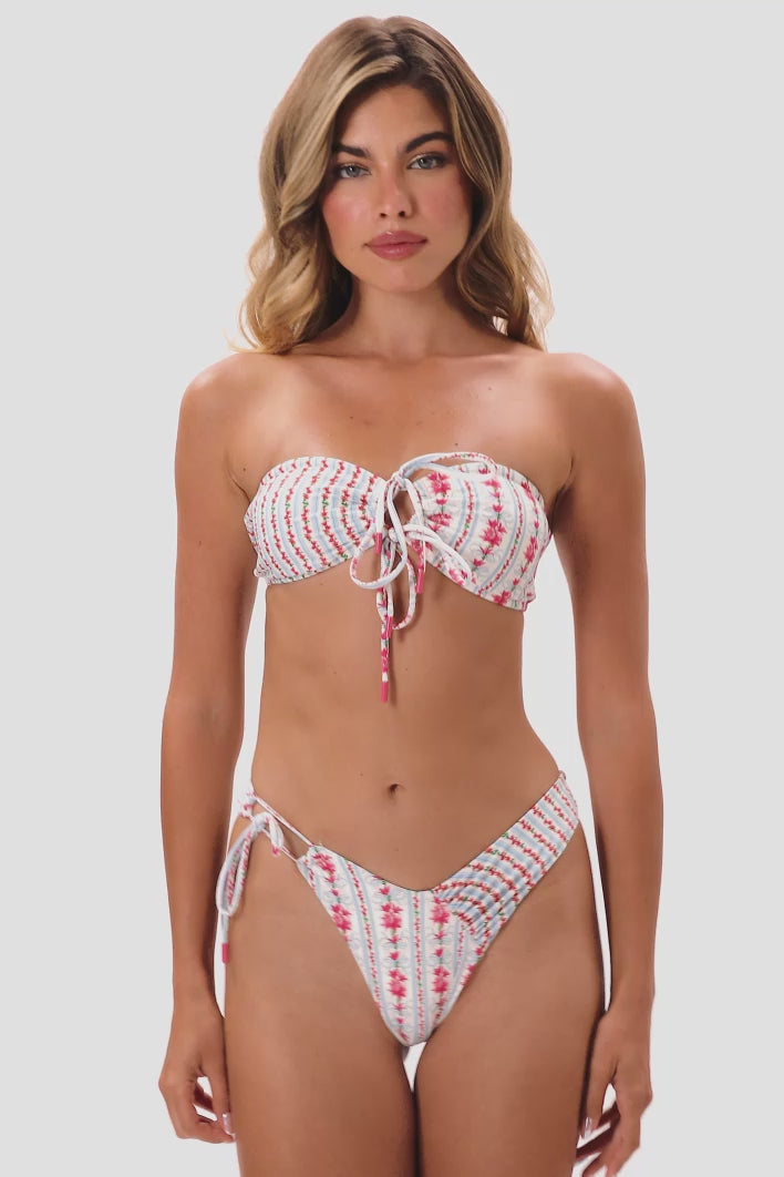 Get ready to meet your new favorite bandeau top. With spicy double ties, a sweetheart neckline, and a sexy keyhole detail, the Alana Top is anything but ordinary.