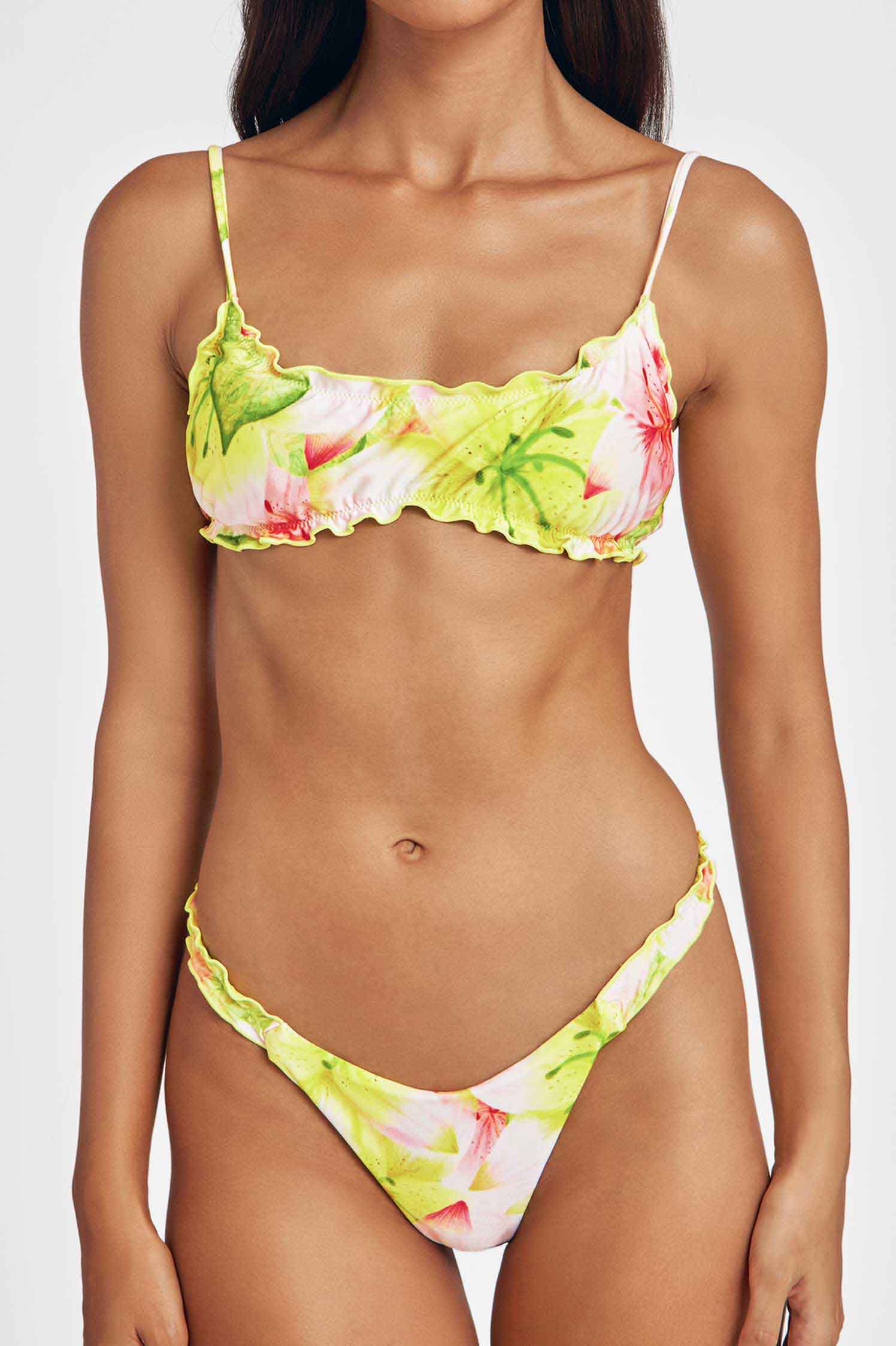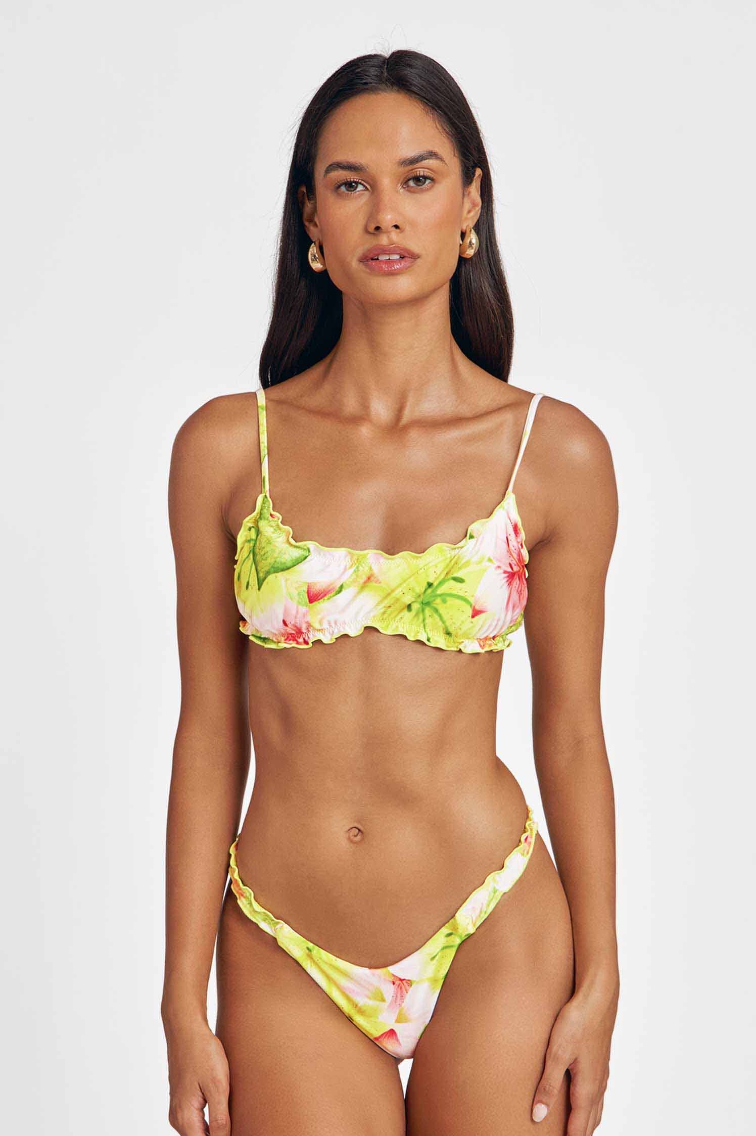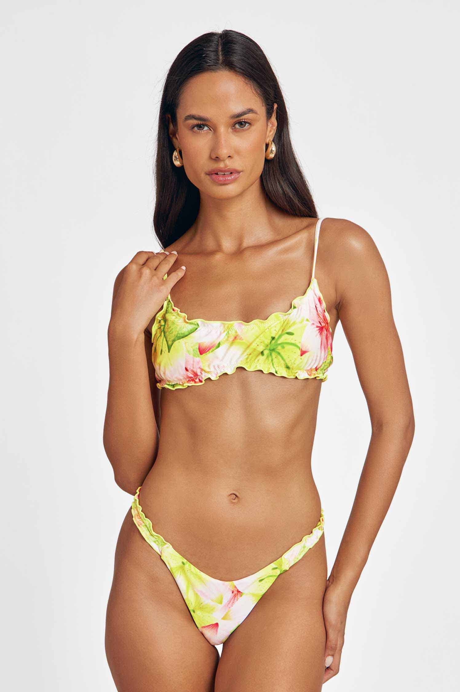 It’s all about fun and frills with the Darby top! Its adjustable straps and double bar clasp ensure support and a customizable fit, while its ruffle detail gives you the cutest twist to a simple silhouette. Wear with its matching bottoms for a playful look.