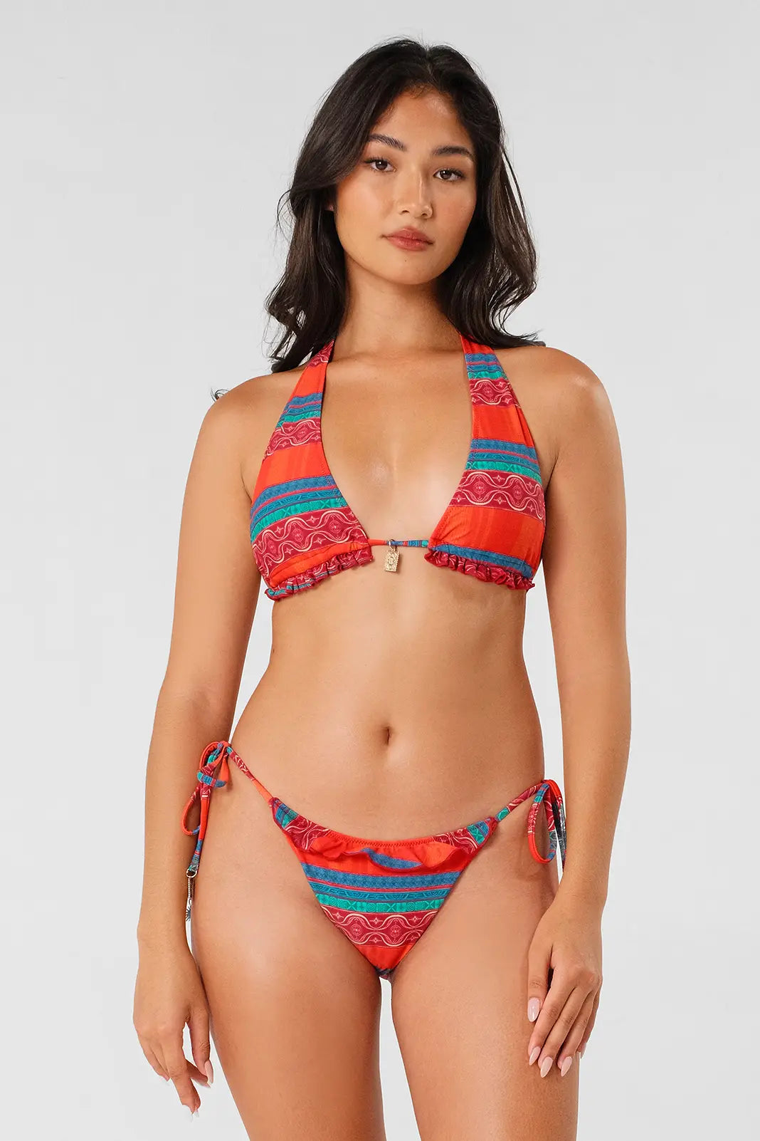 Introducing the Delia bottoms – the ultimate blend of sassy and sweet! These bikini bottoms are designed to make a statement with their delicate ruffles, and side ties to give you that custom fit so you can adjust to flaunt your curves just the way you like. Pair with the Delia top for an overall flirty fit.