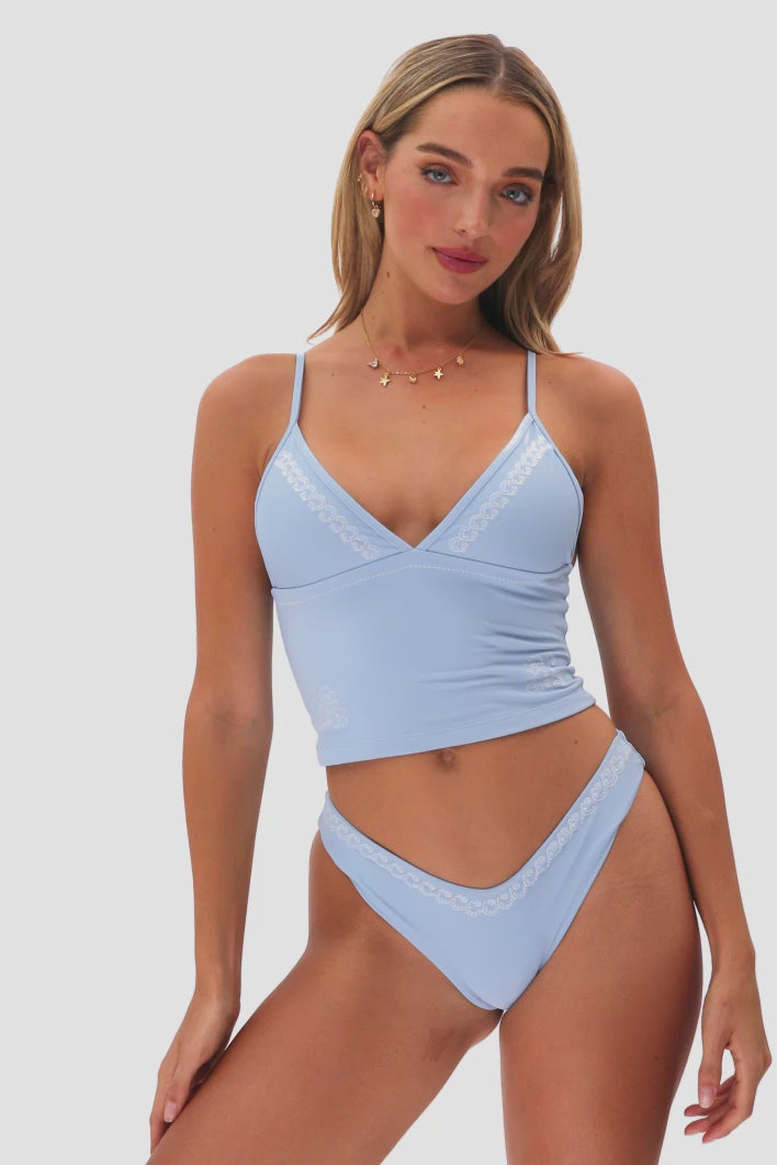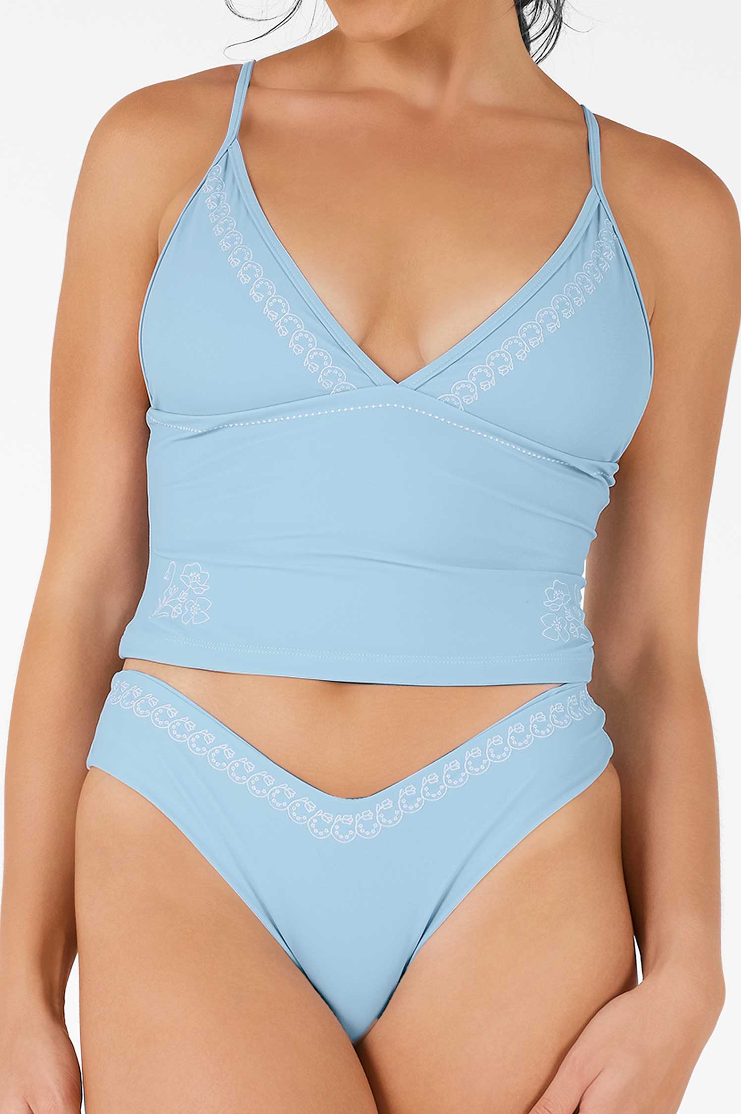 Cute tankini alert! Meet your bestie for this summer: the Holly tankini top. With adjustable straps and adorable embroidery details, this piece is the cutest combo of style and comfort. Wear with its matching bottoms for ultimate fun in the sun!