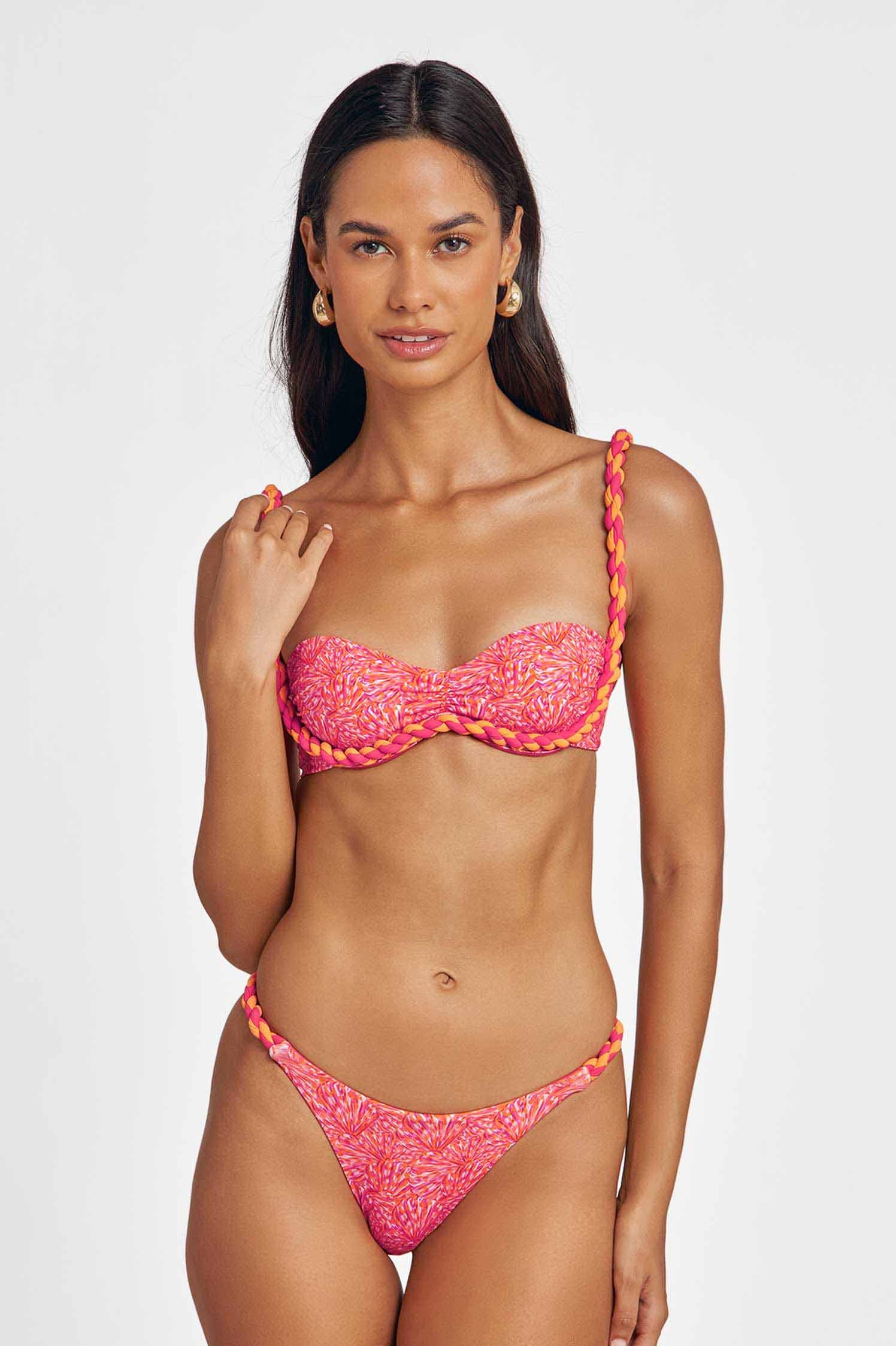 A little bit of island flavor with that luxe vibe– that’s what the Katya top is about. Featuring an intricate twisted rope detail as its straps and built-in padding, this piece not only frames your figure but supports you throughout the day. Pair with its matching bottoms for a super chic ensemble.
