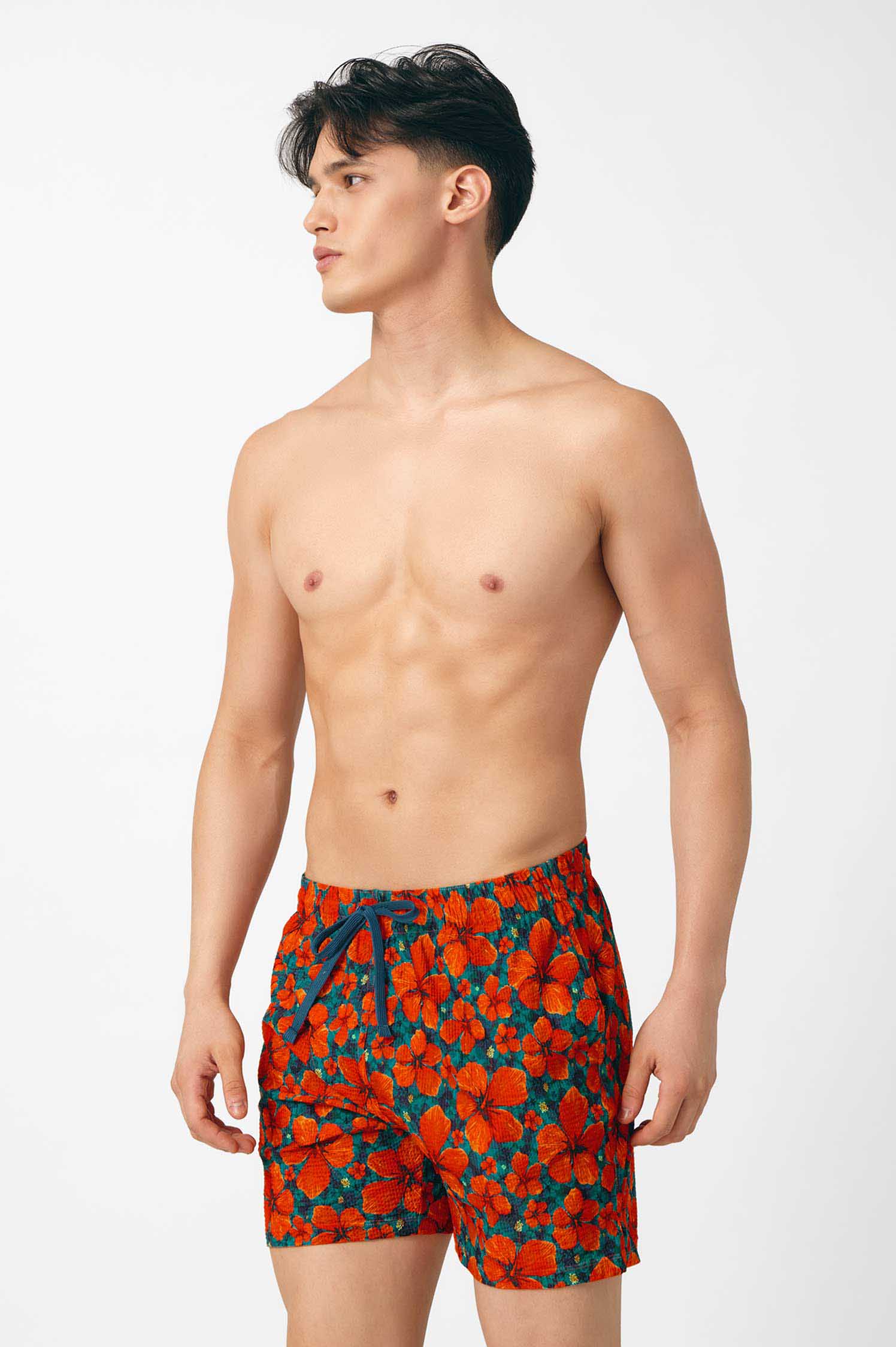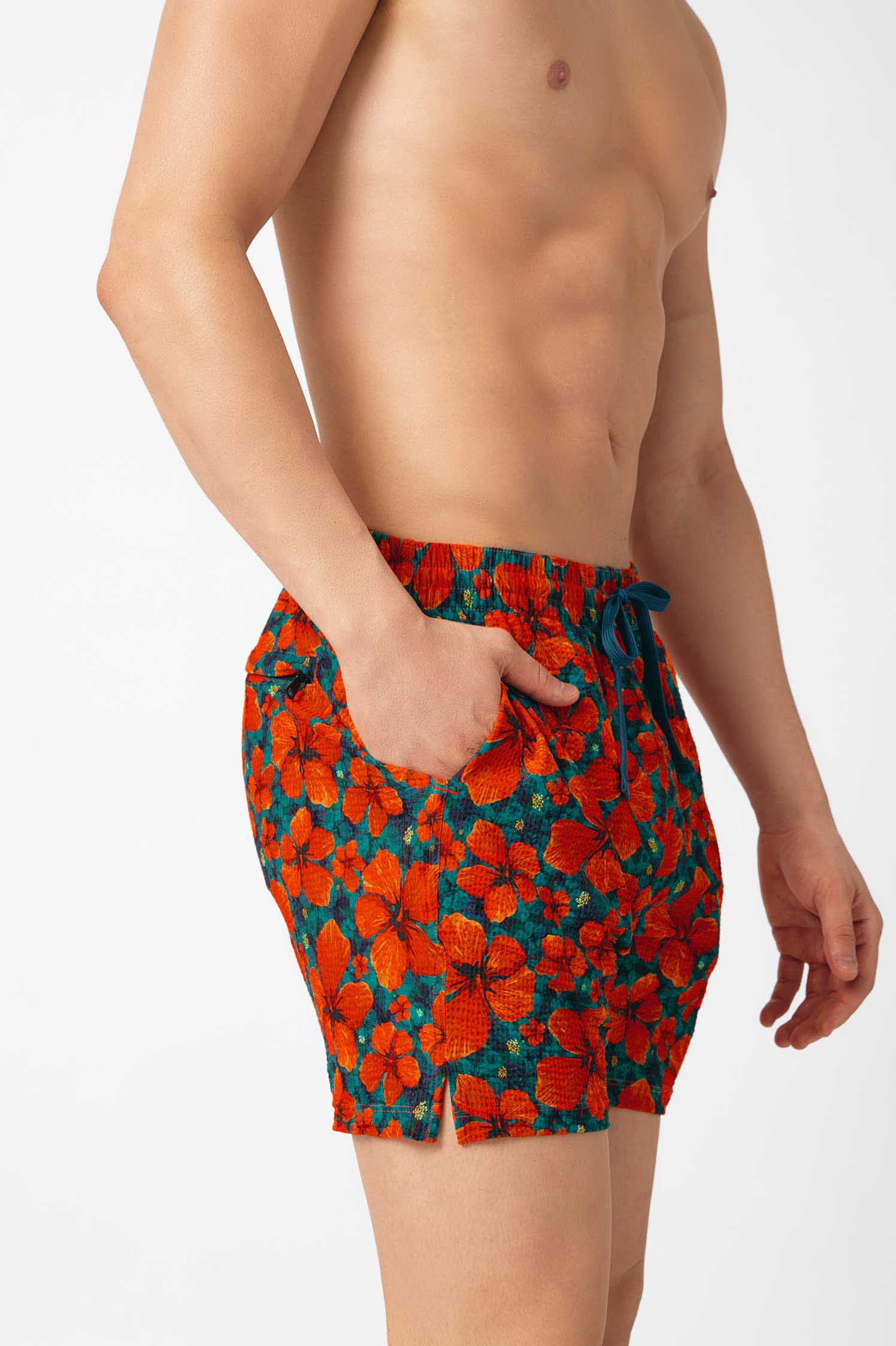 Seize the beach day and sink into our new swim shorts matching with our best-selling prints. The Men’s Swim Shorts come in a unique, ultra-stretchy waffle fabric with a lightweight and breathable inner lining to give you style and comfort, both in and out of the water. Featuring three pockets and an elasticized waistband, these shorts are made for an active and memory-filled beach day.