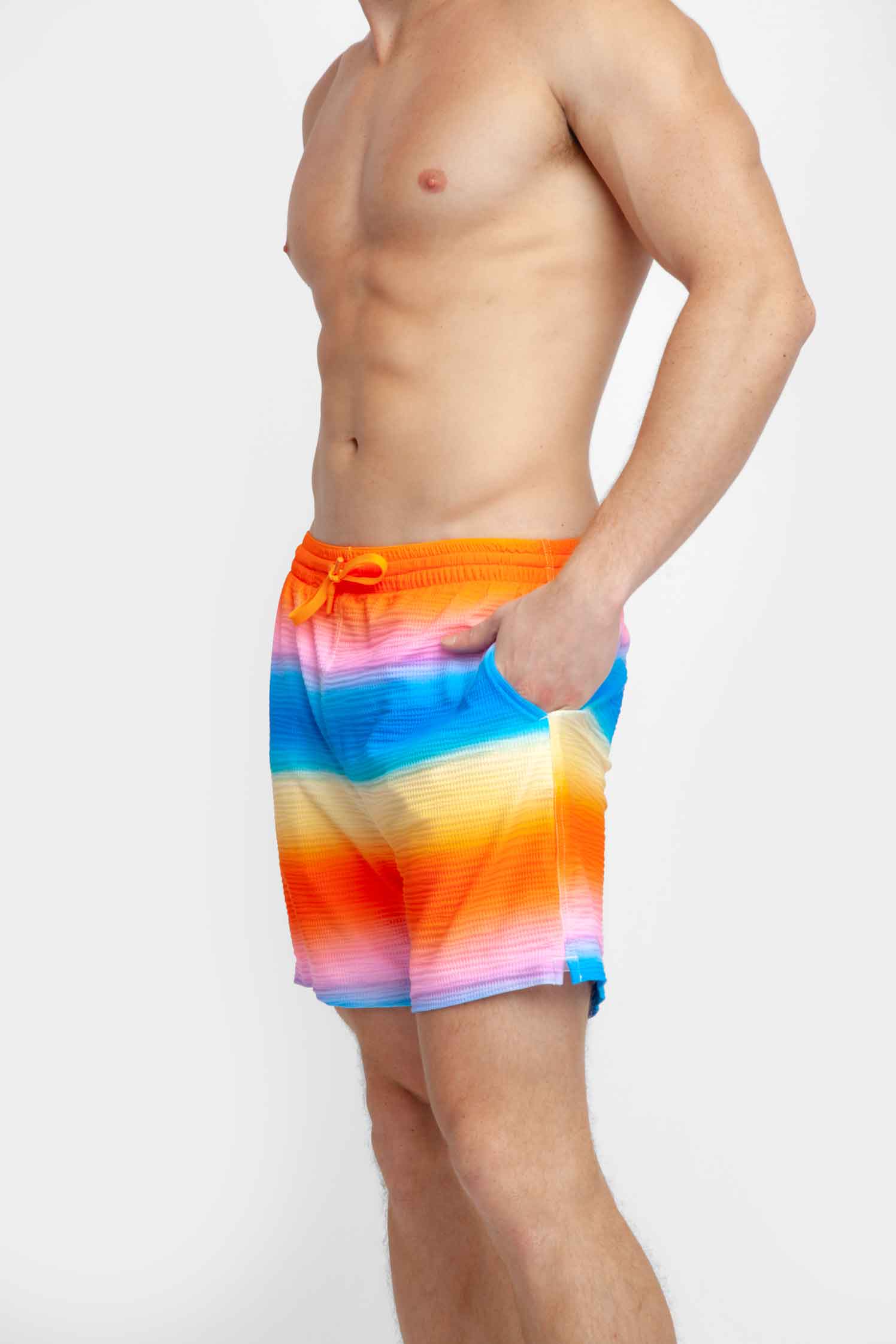 Seize the beach day and sink into our new swim shorts matching with our best-selling prints. The Men’s Swim Shorts come in a unique, ultra-stretchy waffle fabric with a lightweight and breathable inner lining to give you style and comfort, both in and out of the water. Featuring three pockets and an elasticized waistband, these shorts are made for an active and memory-filled beach day.