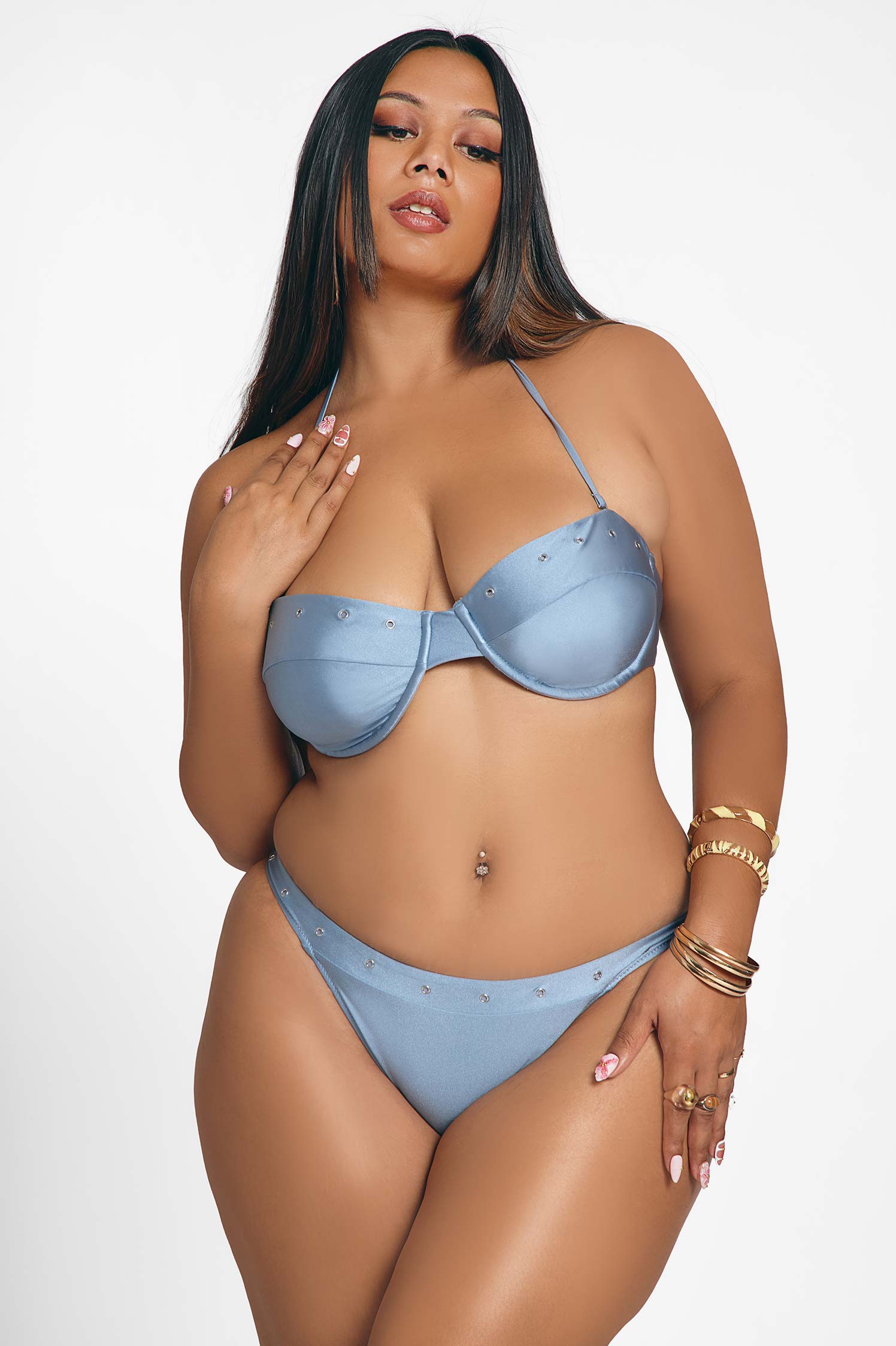 Serving major cool girl energy. The Meygan® Bottoms have that attitude with a classic banded fit and silver rivet details straight out of your Bratz® dream closet. Made with our shimmery REPREVE© fabric, these bottoms are all about lowkey glam and all-day comfort. Made for Summer Escapez and bratziest beach days.