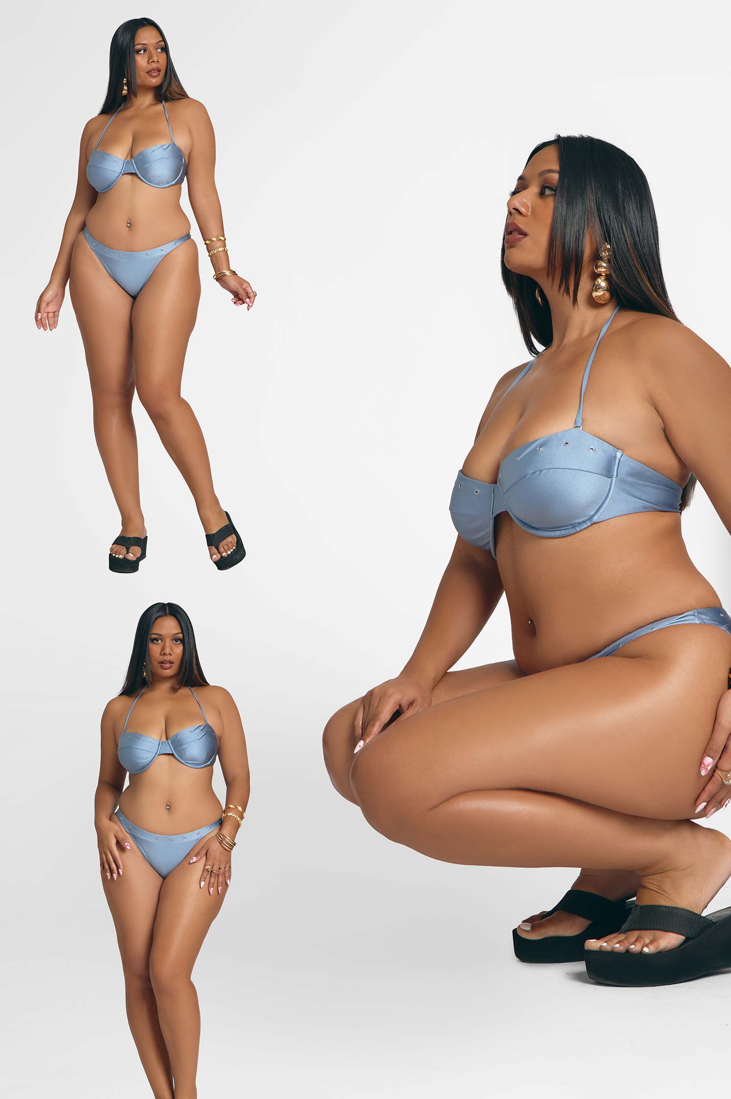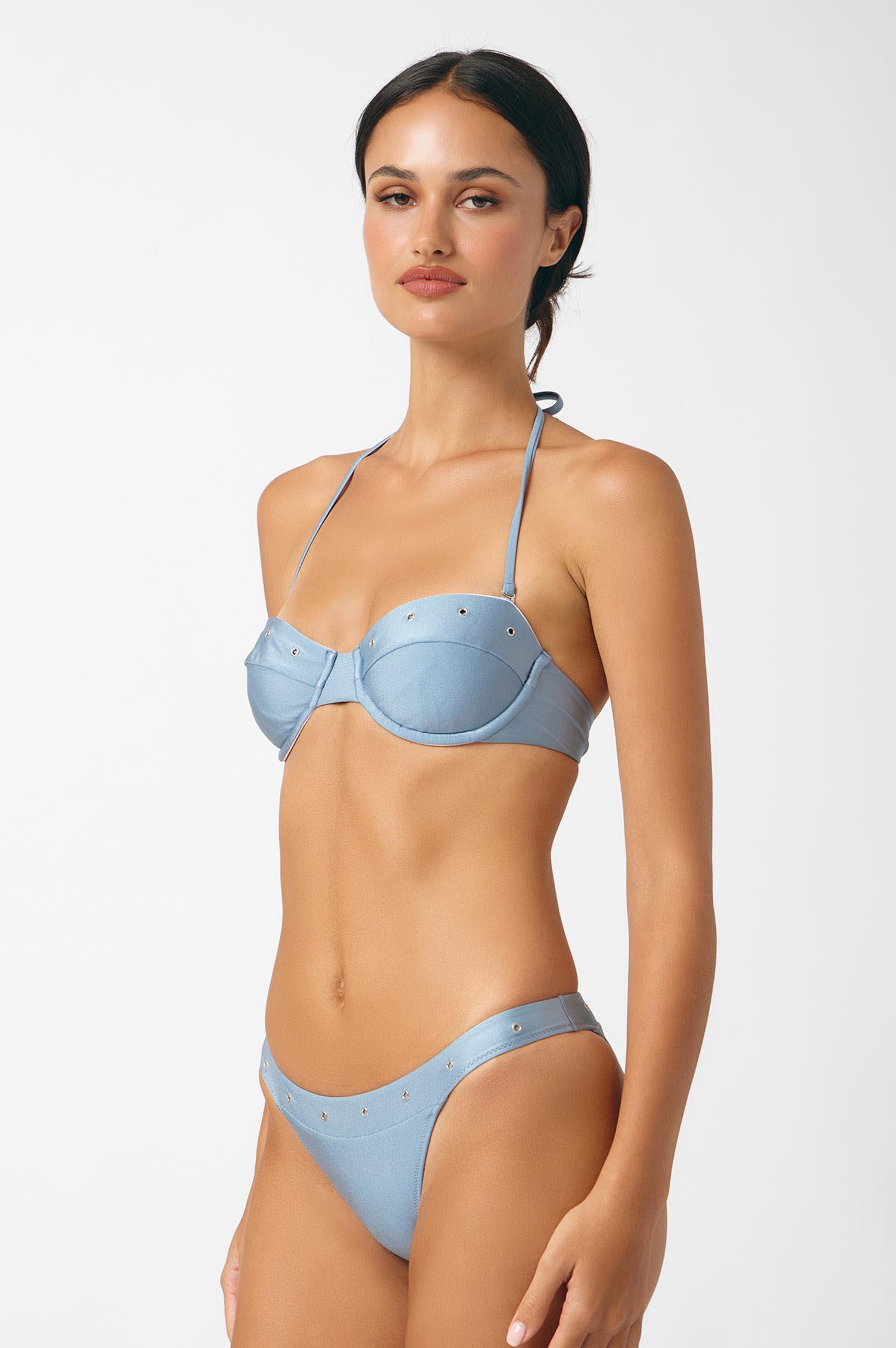 The Meygan® Top brings an angel edge to your summer lineup. This underwire bandeau offers just the right amount of structure, with removable straps so you can wear it your way. Finished with silver rivet details and made in our high-shine REPREVE® fabric, it’s a standout piece designed for poolside lounging, beach escapes, and all things Summer Escapez.