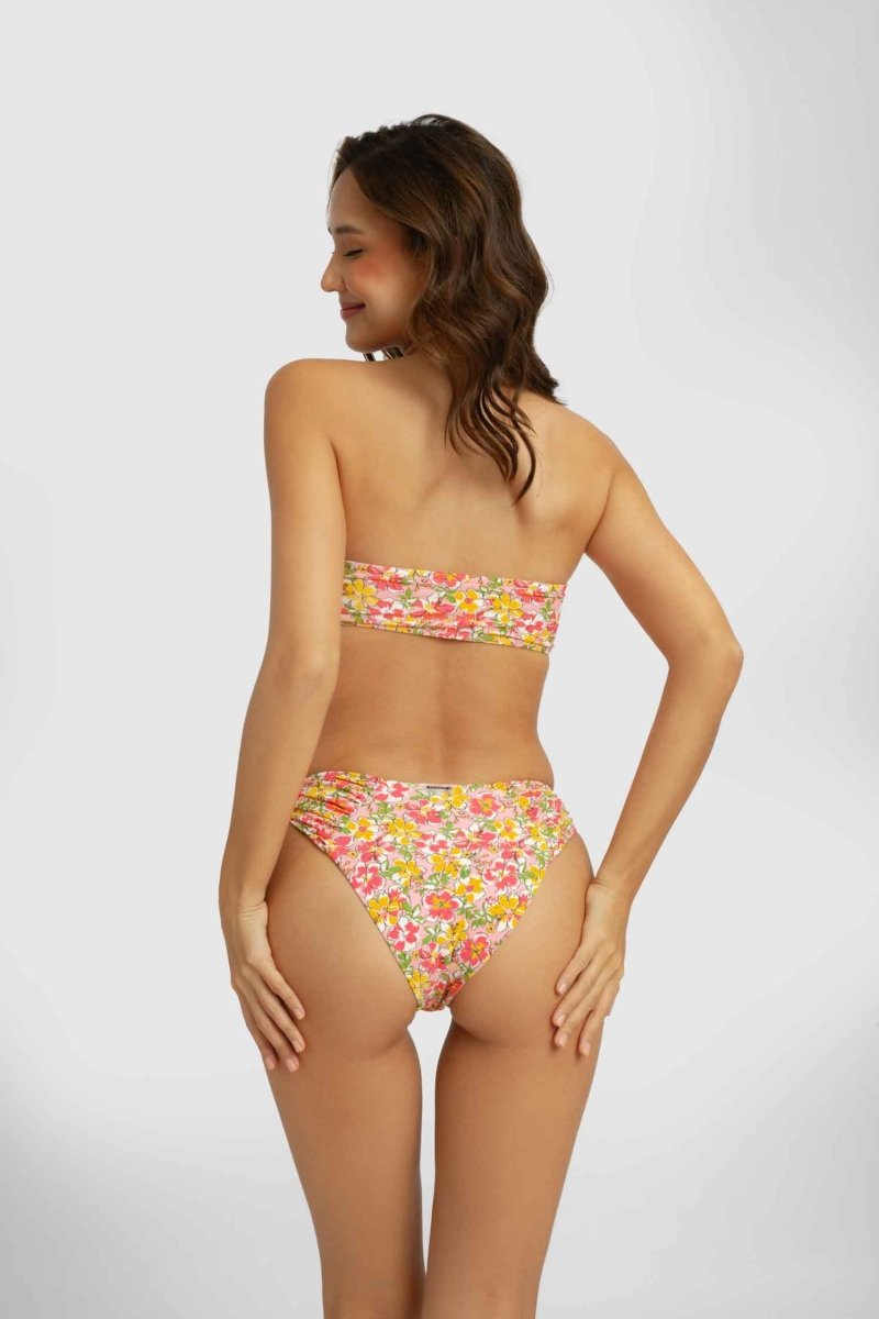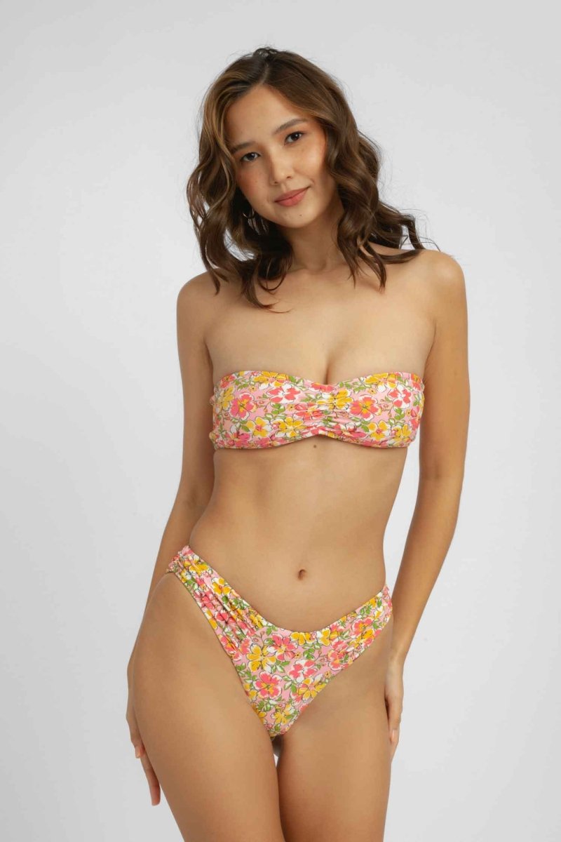 The Palmo top is your classic bandeau bikini top with a slightly ruched center for added style and non-slip rubber support across the hem. Perfect for when you want a seamless tan. Wear it with the Candice bottoms for that clean, tan-worthy look.