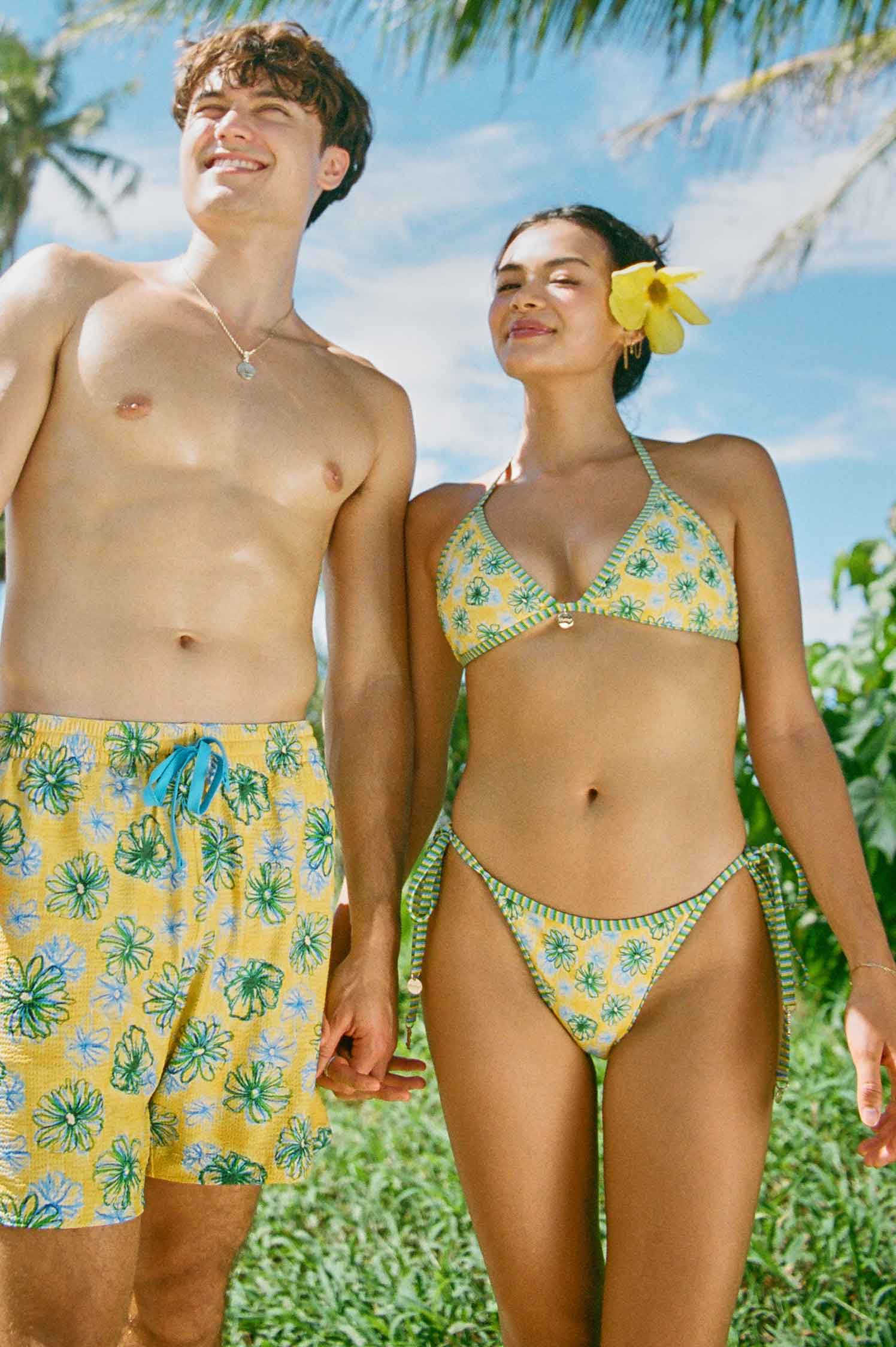 The Quinn Top is Blackbough’s classic triangle top with a twist. Featuring skinny straps for minimal tan lines and multi-color contrast piping, this triangle top keeps everything in place with its adjustable cups and ultra-flattering silhouette. Pair this with the Quinn Bottoms for an all-around playful fit.