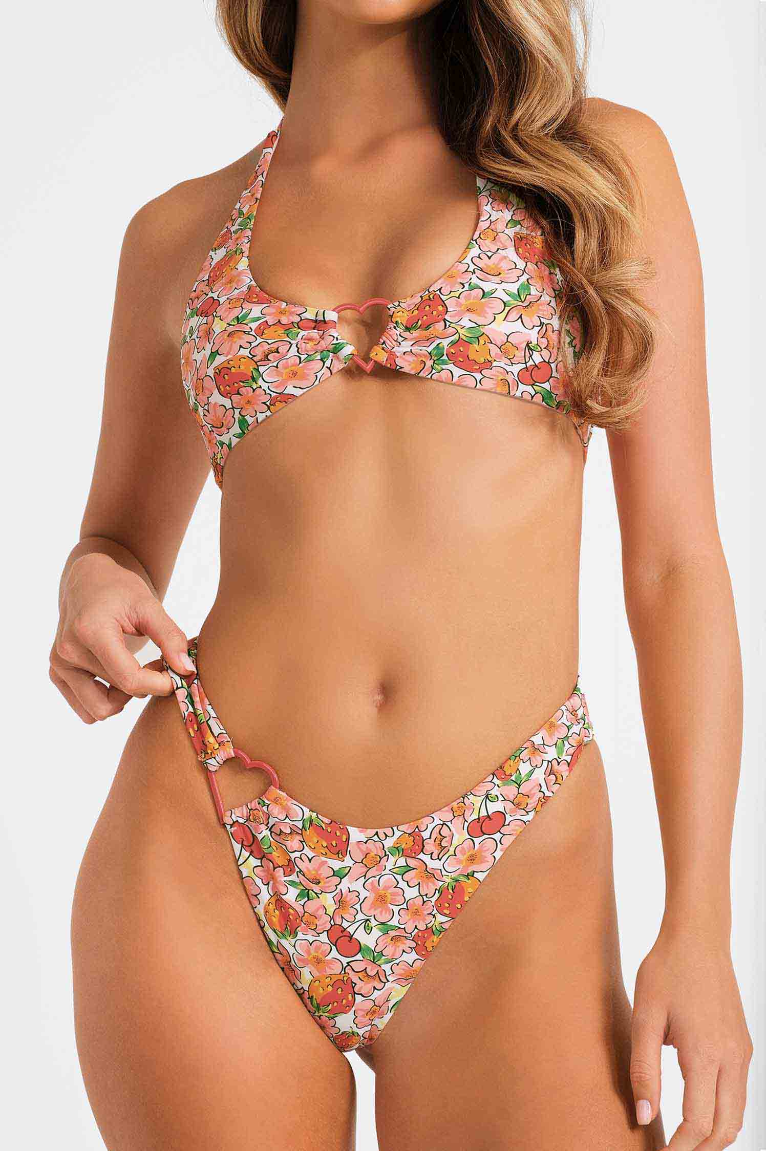 With a high-cut leg, tease coverage, and heart-shaped acrylic buckles, the Thea Bottoms naturally elongate and flatter any figure. Inspired by classic 70's bikini bottoms, these will be your next summer staple. Pair with the Thea Top to complete the look.